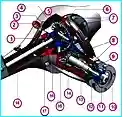Der Aufbau des Getriebes wird im Artikel Konstruktionsmerkmale des Hinterachsgetriebes