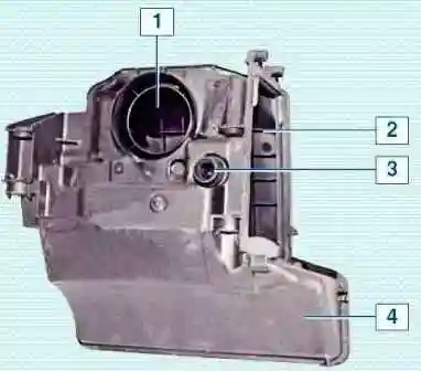 We clean the cavity of the air filter cover and install a new element in reverse order