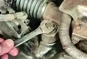 Balanciendo hacia arriba y hacia abajo la barra estabilizadora, comprobamos la ausencia de holgura del puntal estabilizador y los tacos de goma de la barra