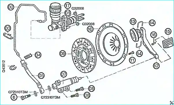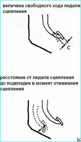Примечание: Свободный ход педали сцепления: 5 - 15 мм.