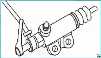 Проверить зазор между педалью и штоком гидропривода. Для этого измерить свободный ход педали сцепления, который должен соответствовать требуемому значению.