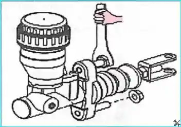 Отсоединить вилку штока главного цилиндра от педали. Отвернуть гайки крепления главного цилиндра.