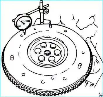 Измерить биение маховика. При превышении предельно допустимого значения радиального биения маховика 0.2 мм, заменить маховик новым.