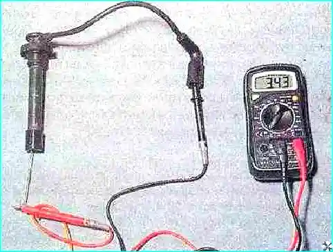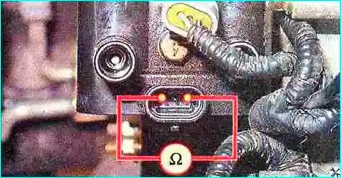 Поочередно измеряем сопротивление на выводах первичных обмоток катушки зажигания. Сопротивление должно находиться в пределах 0,4-0,6 Ом. Если сопротивление отсутствует или больше катушка неисправна.