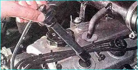 Отсоединяем провод от катушки зажигания (см. выше, «Катушка зажигания проверка и замена»).