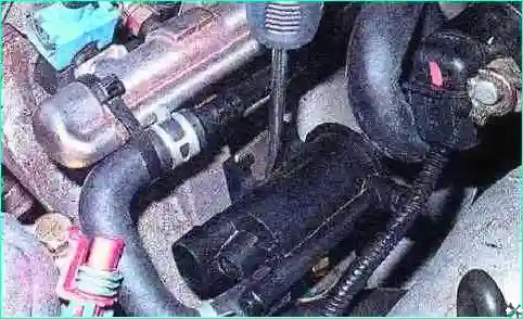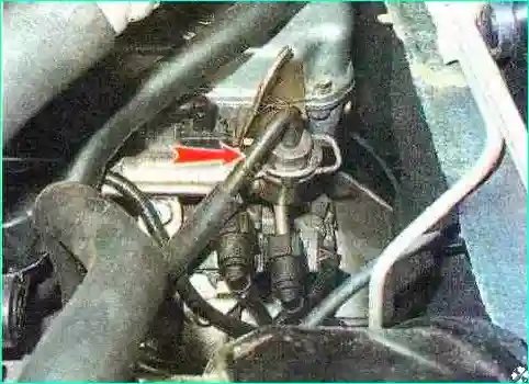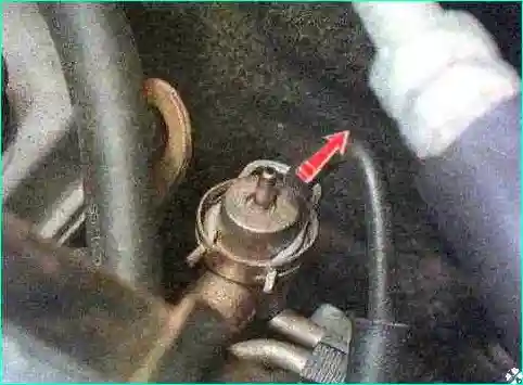 Отсоединяем от патрубка регулятора шланг соединения с впускным трубопроводом.