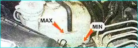 Проверяем уровень охлаждающей жидкости расширительном бачке и при необходимости доводим его до нормы