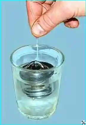 Погружаем термостат в воду и нагреваем. При достижении температуры 95°C термостат должен полностью открыться. При этом клапан должен переместиться не менее чем на 8,5 мм.