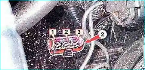 Замечание: При отсутствии мультиметра можно обойтись и без него. Соедините проводами вывод 3 разъема электродвигателя минусом АКБ, а 1 и 2, поочередно, с положительным выводом аккумуляторной батареи. При этом электровентилятор должен вращаться, соответственно, с высокой и низкой скоростью.