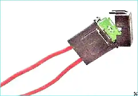Если предыдущие проверки не выявили неисправности, проверяем электродвигатель электровентилятора и добавочный резистор. Для этого нажимая фиксатор, отсоединяем колодку жгута проводов от разъема на кожухе радиатора.