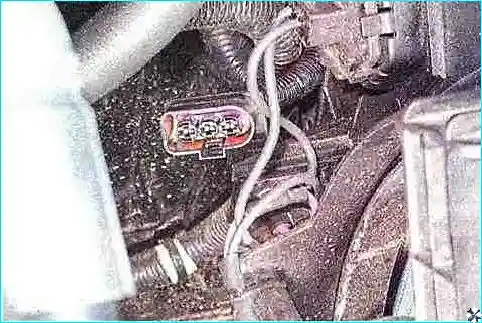 Отсоединяем колодку жгута проводов электровентилятора.