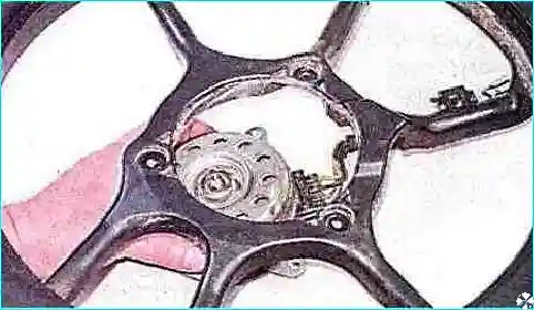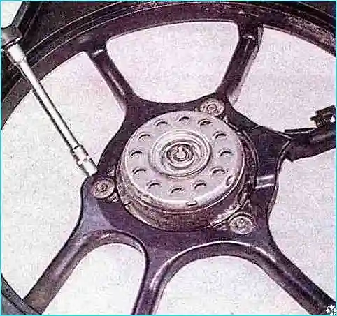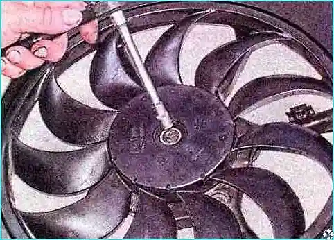 Торцовым ключом отворачиваем болт крепления крыльчатки электровентилятора и снимаем крыльчатку.
