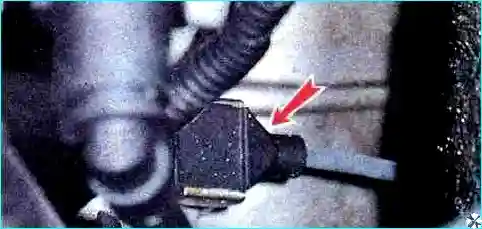 Нажимаем фиксатор и отсоединяем колодку жгута проводов от датчика.