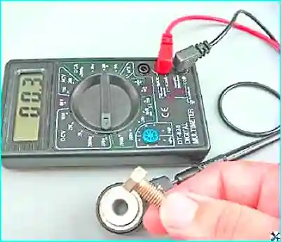 Металлическим предметом (болтом, отверткой) слегка постукиваем по датчику, при этом на вольтметре должны наблюдаться скачки напряжения.