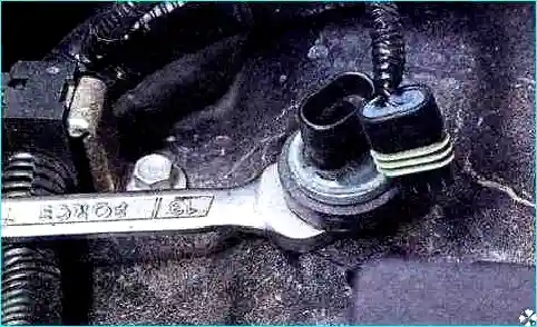 Накидным или торцовым ключом на 10 мм откручиваем болт крепления датчика.