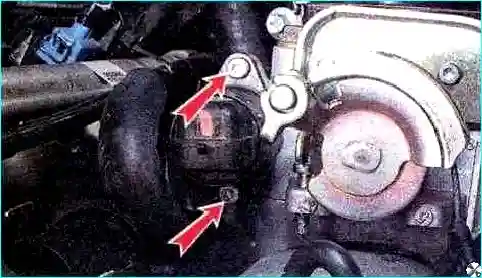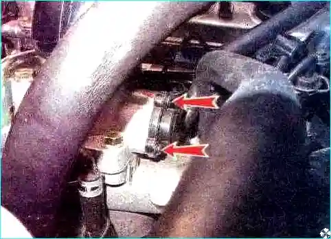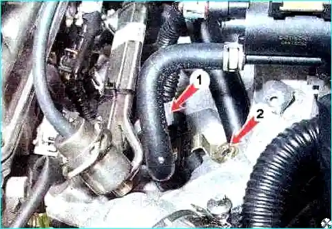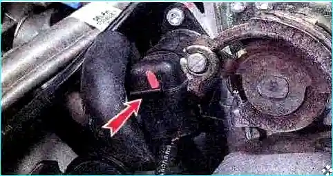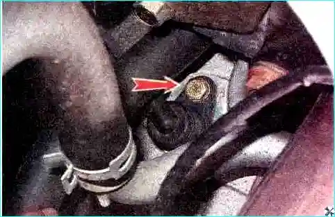 Замечание: При выполнении следующей операции из системы вытечет небольшое количество охлаждающей жидкости, для ее сбора нужно подложить ветошь