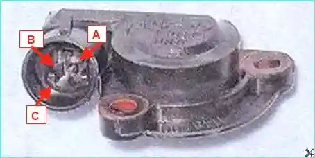 Для проверки датчика мультиметром в режиме омметра замеряем, сопротивление на выводах (А) и (С) и при этом поворачиваем его подвижный элемент. Сопротивление исправного датчика должно плавно измениться в пределах 3-12 кОм