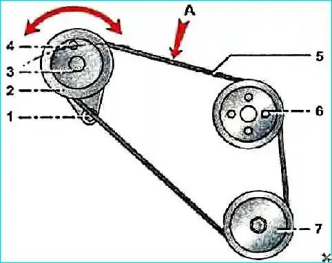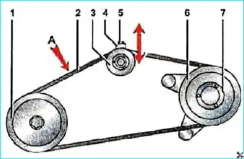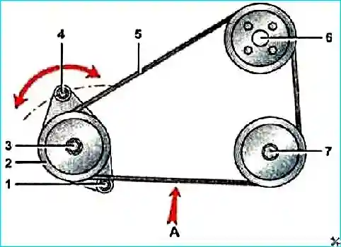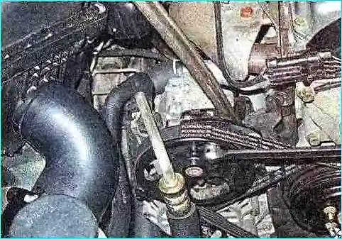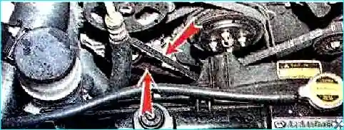 Регулировка натяжения ремня привода генератора и насоса системы охлаждения