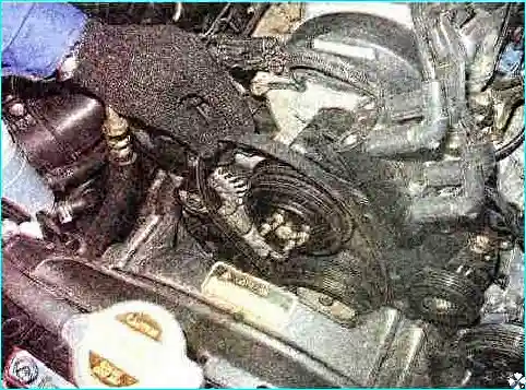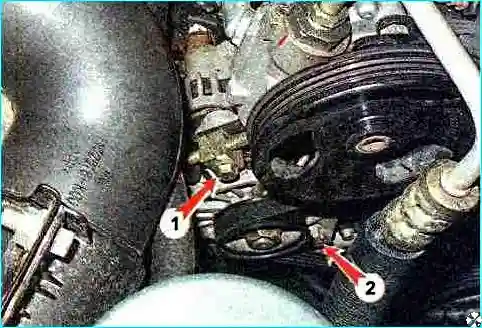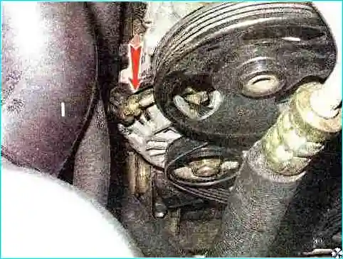 Регулировка натяжения ремня привода насоса гидроусилителя рулевого механизма и насоса системы охлаждения