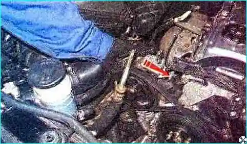 Проверяем затяжку гайки болта нижнего крепления насоса гидроусилителя моментом 44 Нм