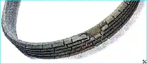На ремне не допускаются трещины, порезы, расслоения, выступание корда.
