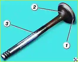 Замените клапаны со следующими дефектами: глубокие риски и царапины на рабочей фаске 1 (рис. 10), трещины, деформация стержня 3 клапана, коробление тарелки 2 клапана, следы прогара. Неглубокие риски и царапины на рабочей фаске можно вывести притиркой клапанов.