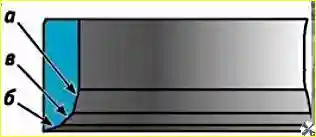 Имея слесарный навык, можно это сделать вручную с помощью набора специальных фрез. Вначале обрабатывается фаска (а) под углом 15° (рис. 11), затем фаска (б) под углом 20° и фаска (в) под углом 45°. После шлифовки необходимо притереть клапаны.