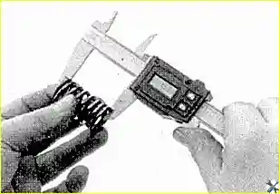 Для проверки упругости наружной пружины измерьте ее высоту в свободном состоянии (рис. 12). Если пружина не соответствует требуемым параметрам (указанные в таблице технических данных), замените ее. Проверьте зазор между направляющими втулками и клапанами. Зазор вычисляется как разность между диаметром отверстия во втулке и диаметром стержня