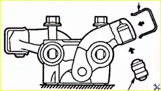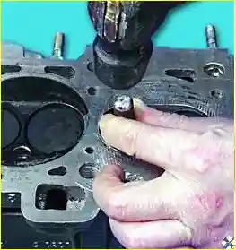 При обнаружении течи моторного масла или охлаждающей жидкости в местах соединения головки блока с блоком цилиндров снимите головку и замените ее прокладку. Течь может возникнуть также из-за коробления головки блока вследствие перегрева.