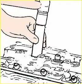 Проверьте герметичность гидротолкателя на приборе MD998440. Для этого измерьте время, требуемое для хода плунжера на 1 мм, начиная от его смещения на 0,2-0,5 мм. Это время должно быть 4-20 с. В противном случае гидротолкатель замените.