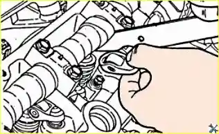 Снимите верхнюю крышку ремня и крышку головки цилиндров.