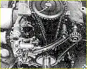 Установите поршень 1-го цилиндра в положение ВМТ такта сжатия (см. соответствующий раздел), совместив метки на звездочке распределительного вала и на головке цилиндров.