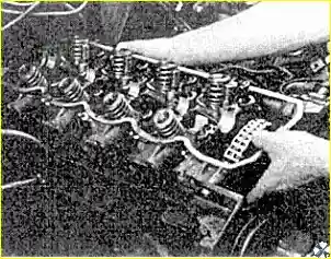 Для проверки герметичности клапанов залейте керосин в камеры сгорания. Если в течение трех минут керосин не просочится из камер сгорания клапаны герметичны. В противном случае притрите или замените клапаны.