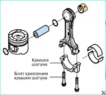 Соблюдать осторожность во время снятия поршня в сборе с шатуном, чтобы не поцарапать шатунную шейку коленчатого вала и внутреннюю поверхность цилиндра.