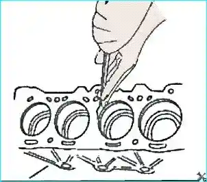 - - Нанести герметик на установочную поверхность головки блока цилиндров двигателя. Марка герметика: Loctite 510 или аналогичный.