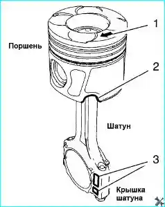 Примечание: Метка на днище поршня должна быть направлена в ту же сторону что и метка на шатуне.