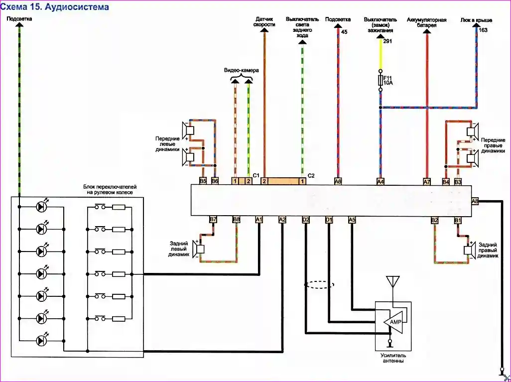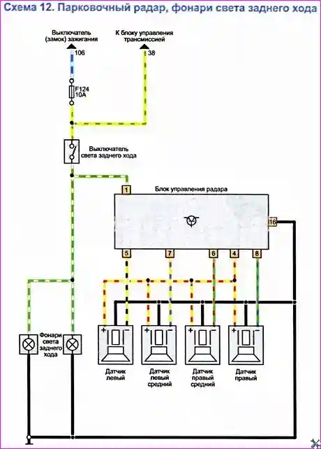 Схема 12. Парковочный радар. Фонари света заднего хода