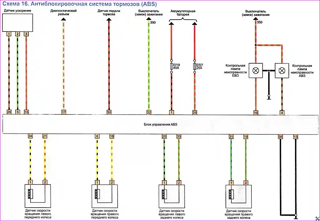 Схема 16. Антиблокировочная система тормозов (АБС)
