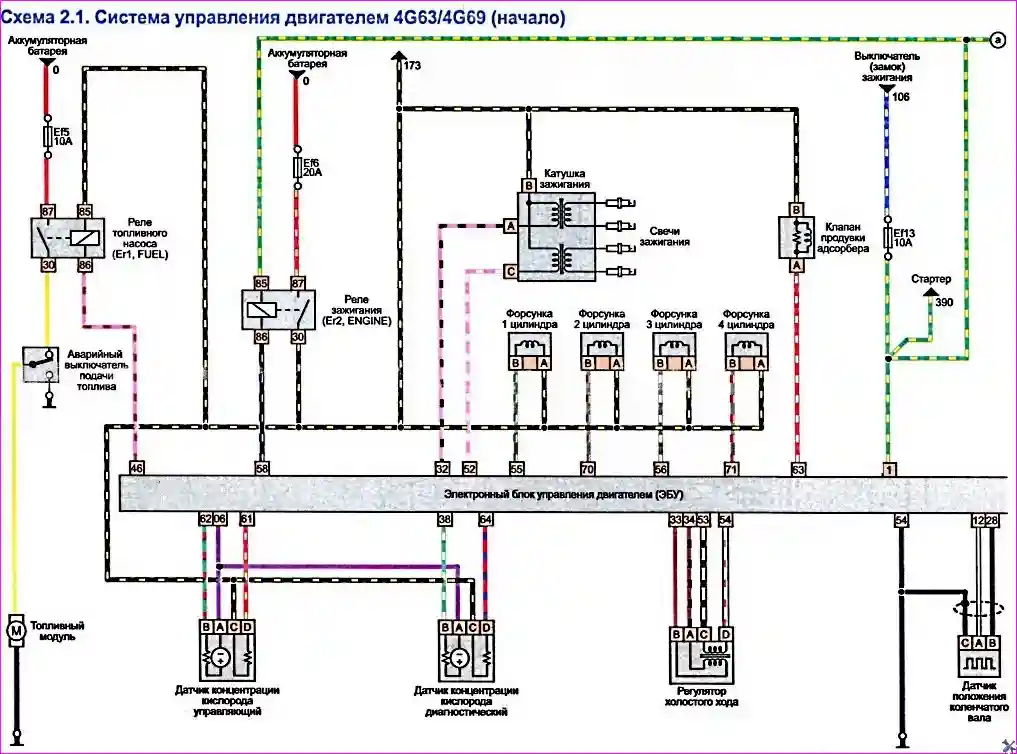 Схема 2.1. Система управления двигателем 4G63/4G69 (начало)