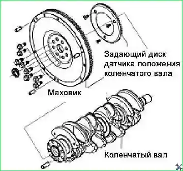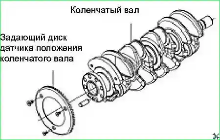 Снять коленчатый вал и сигнальный диск датчика положения коленчатого вала: