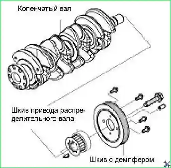 Снять демпфирующий шкив коленчатого вала.