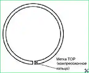 Установить компрессионные кольца таким образом, чтобы метка «ТОР» находилась вверху. Поршневые кольца должны перемещать плавно внутри установочных пазов поршня. После установки поршневых колец, необходимо проверить их боковой зазор и зазор замков поршневых колец.