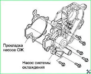 Примечание: Проверить прокладку водяного насоса на предмет наличия следов повреждений или деформации. При необходимости заменить прокладку.