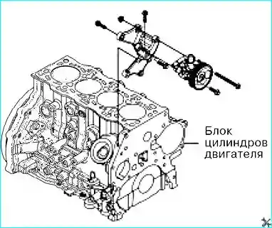 - - откручиваем три болта (м8х25, м8х30) крепления кронштейна насоса усилителя рулевого управления к блоку цилиндров двигателя, и затем снимаем кронштейн