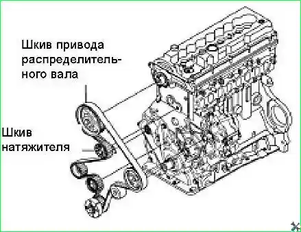 - - Снять натяжной шкив ремня привода ГРМ.