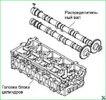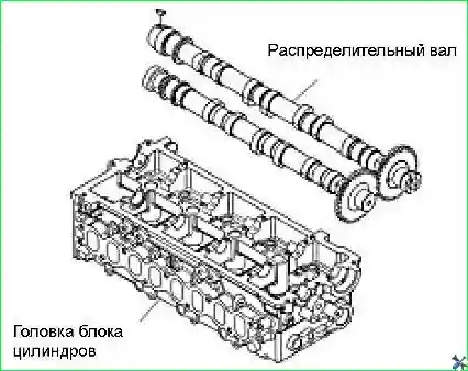 - - Установить впускной и выпускной распределительные валы внутрь головки блока цилиндров, как показано на рисунке.