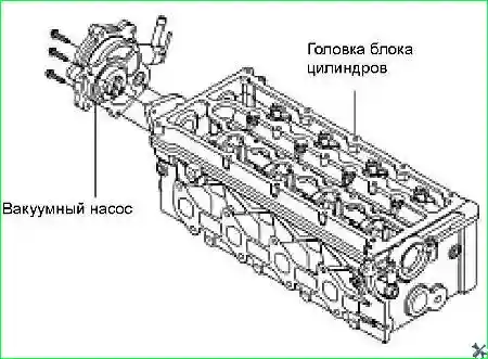- - Снять вакуумный насос с головки блока цилиндров.