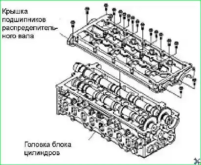 - - Снять крышку постели распределительных валов с головки блока цилиндров.
