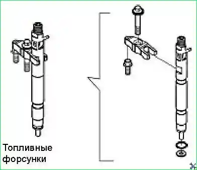 - - Снять держатель топливной форсунки