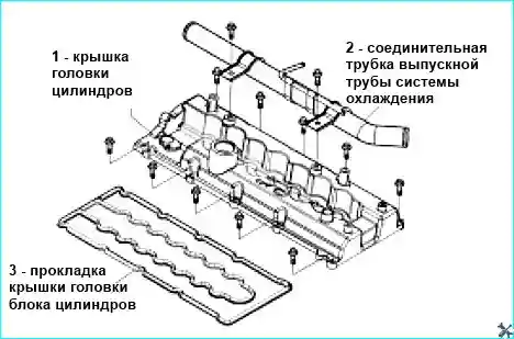 - - Отвернуть шестнадцать болтов с шестигранными головками (М6х20) крепления крышки головки блока цилиндров к головке блока цилиндров.